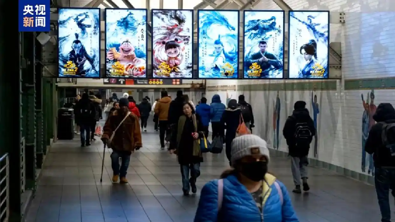 △《哪吒2》海報亮相美國紐約多個地鐵站。