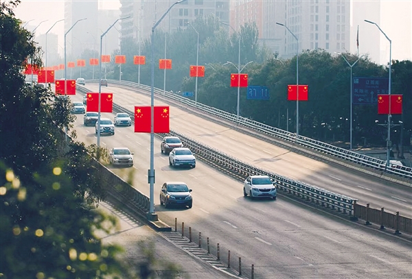 連日來,市城區(qū)各主干街道、大街小巷五星紅旗迎風飄揚,“中國紅”構成了城市最亮麗的風景線,將慶祝中華人民共和國成立76周年的氛圍感拉滿。9月下旬以來,市市政公用事業(yè)服務中心分別在市城區(qū)龍湖街、錦綸路、順城街、匯通路、魏榆路、新華街等6條主干道的燈桿上懸掛國旗1000組。國旗懸掛期間,該中心工作人員每日巡查,及時更換、維護國旗,確保國旗整齊靚麗,展現(xiàn)城市昂揚向上、不懈奮斗的氣質。驅車行駛在市城區(qū)龍湖街、魏榆路等主干道上,只見隨著路燈桿的走勢,五星紅旗在金色秋日里展現(xiàn)出欣欣向榮、朝氣蓬勃的景象。此外,全市各縣(區(qū)、市)的各條主街道,由商家根據(jù)相關規(guī)定,懸掛起一面面國旗營造節(jié)日氛圍。
