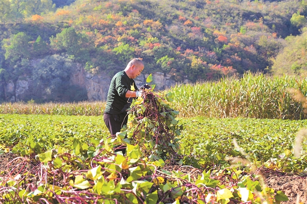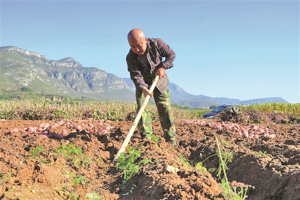 昔陽(yáng)縣東冶頭鎮(zhèn)東固壁村村民將紅薯進(jìn)行分揀、裝袋。 本報(bào)通訊員 李鵬 鄭曉飛 攝