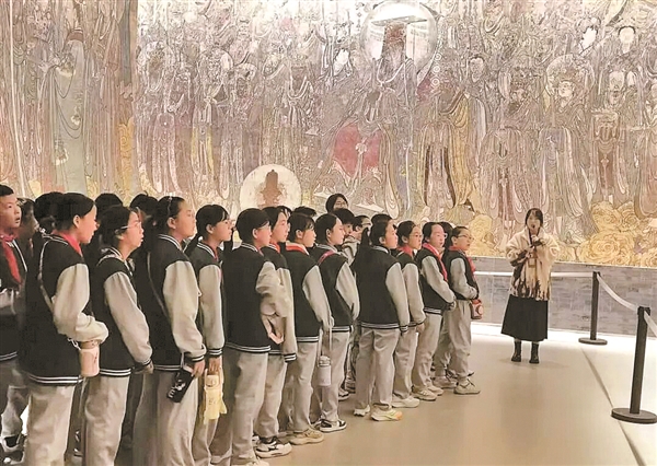 圖為學生在壁畫館內研學。記者 耿新洲 攝