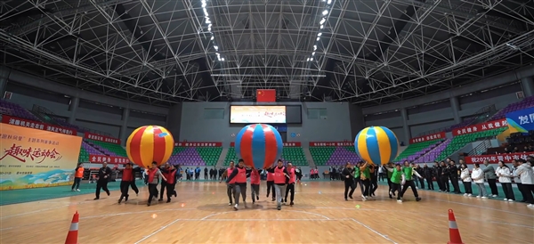 隨著一聲清脆的發(fā)令哨響,運動會正式拉開帷幕?!斑\轉乾坤”“十拿九穩(wěn)”“彩虹縱隊”等特色比賽項目輪番登場。每個項目都巧妙融合了體彩元素與團隊協(xié)作需求,既富有趣味性,又考驗團隊的協(xié)作能力?!斑\轉乾坤”項目里,隊員們合力托舉巨型充氣道具穩(wěn)步前行,步伐協(xié)調間盡顯彼此的默契;“彩源滾滾”賽道上,參賽隊伍踩著模擬“彩票卷軸”的履帶同步邁進,歡呼聲隨履帶的滾動此起彼伏;“十拿九穩(wěn)”挑戰(zhàn)中,選手們手持特制道具精準傳遞,每一次交接都考驗著專注力與手感;“彩虹縱隊”接力賽更是將現(xiàn)場氣氛推向高潮,隊員們接力沖刺、配合無間,彩色隊服在賽場上來回穿梭,劃出一道道靈動的弧線。