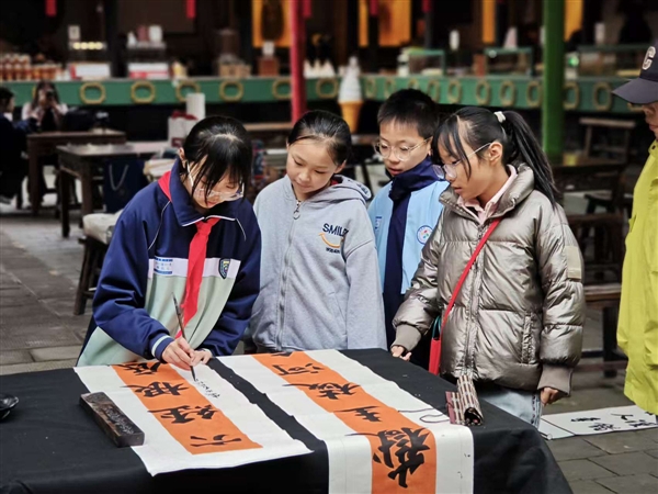 “晉商大院的楹聯(lián)匾額是‘立體的家訓(xùn)’?!睍x中市三晉文化研究會(huì)副會(huì)長(zhǎng)趙世芳表示,此次活動(dòng)以古院為文化課堂,通過(guò)講解、書寫與篆刻的沉浸式體驗(yàn),讓“孝悌忠信”“仁義勤儉”等家風(fēng)基因在互動(dòng)中煥發(fā)生機(jī),實(shí)現(xiàn)了文化的活態(tài)傳承。晉中師范高等專科學(xué)校美術(shù)系副教授呂靜然表示,“中小學(xué)生、高校學(xué)子與民間愛(ài)好者的跨界參與,搭建了文化傳承的橋梁,既深入挖掘了晉商文化中的家風(fēng)底蘊(yùn),又推動(dòng)了傳統(tǒng)文化創(chuàng)造性轉(zhuǎn)化與創(chuàng)新性發(fā)展。”