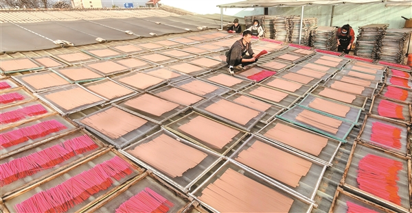 十一月十二日,在太谷區(qū)源珍香業(yè)文化有限公司,技術(shù)人員正在晾曬剛剛為訂單客戶制作完成的香品。近年來(lái),該公司采用實(shí)體與互聯(lián)網(wǎng)相結(jié)合的多元銷(xiāo)售模式,線上借助各大電商平臺(tái),線下精心布局實(shí)體店鋪,讓消費(fèi)者能夠親身感受香品的獨(dú)特魅力。