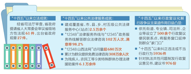 “十四五”以來,全省司法行政系統(tǒng)堅(jiān)持和發(fā)展新時代“楓橋經(jīng)驗(yàn)”,以法治力量維護(hù)社會和諧穩(wěn)定,助力建設(shè)更高水平的平安山西、法治山西。