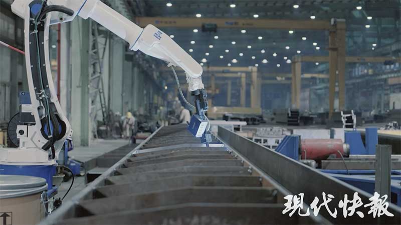 后來,邱明輝勞模創(chuàng)新工作室掛牌成立?!拔覀冄邪l(fā)的首臺(tái)‘便攜式Mini型弧焊機(jī)器人’在蘇州國際金融中心完成43層外框柱對接處的施焊,焊縫合格率達(dá)到100%,開創(chuàng)國內(nèi)機(jī)器人超高層焊接先河?!鼻衩鬏x介紹。十年來,越來越多的95后、00后新焊工加入邱明輝團(tuán)隊(duì),年輕人用機(jī)器編程代替手工作業(yè),從“人機(jī)大戰(zhàn)”到“人機(jī)融合”。