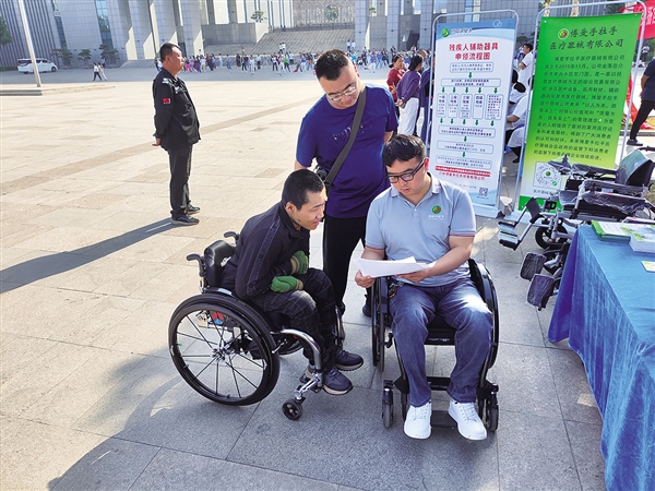 2010年,一場(chǎng)突如其來(lái)的工程事故改變了穆澤卿的人生軌跡,讓他不得不坐上了輪椅?!拔冶仨殘?jiān)強(qiáng)地活下去?!痹诒本┛祻?fù)期間,10余次手術(shù),他都樂(lè)觀地面對(duì)。2013年,穆澤卿有幸加入清華大學(xué)無(wú)障礙發(fā)展課題研究團(tuán)隊(duì),成為殘疾人志愿者。這段經(jīng)歷點(diǎn)燃了他心中“以殘助殘”的火種。兩年后,他創(chuàng)辦介休博愛(ài)手拉手貿(mào)易有限公司,專(zhuān)注醫(yī)療器械經(jīng)營(yíng),立志為殘障群體更好地選擇適合自己的輔助器具。