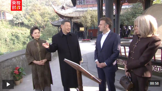 12月5日,國(guó)家主席習(xí)近平在四川省成都市都江堰同法國(guó)總統(tǒng)馬克龍進(jìn)行友好交流。
